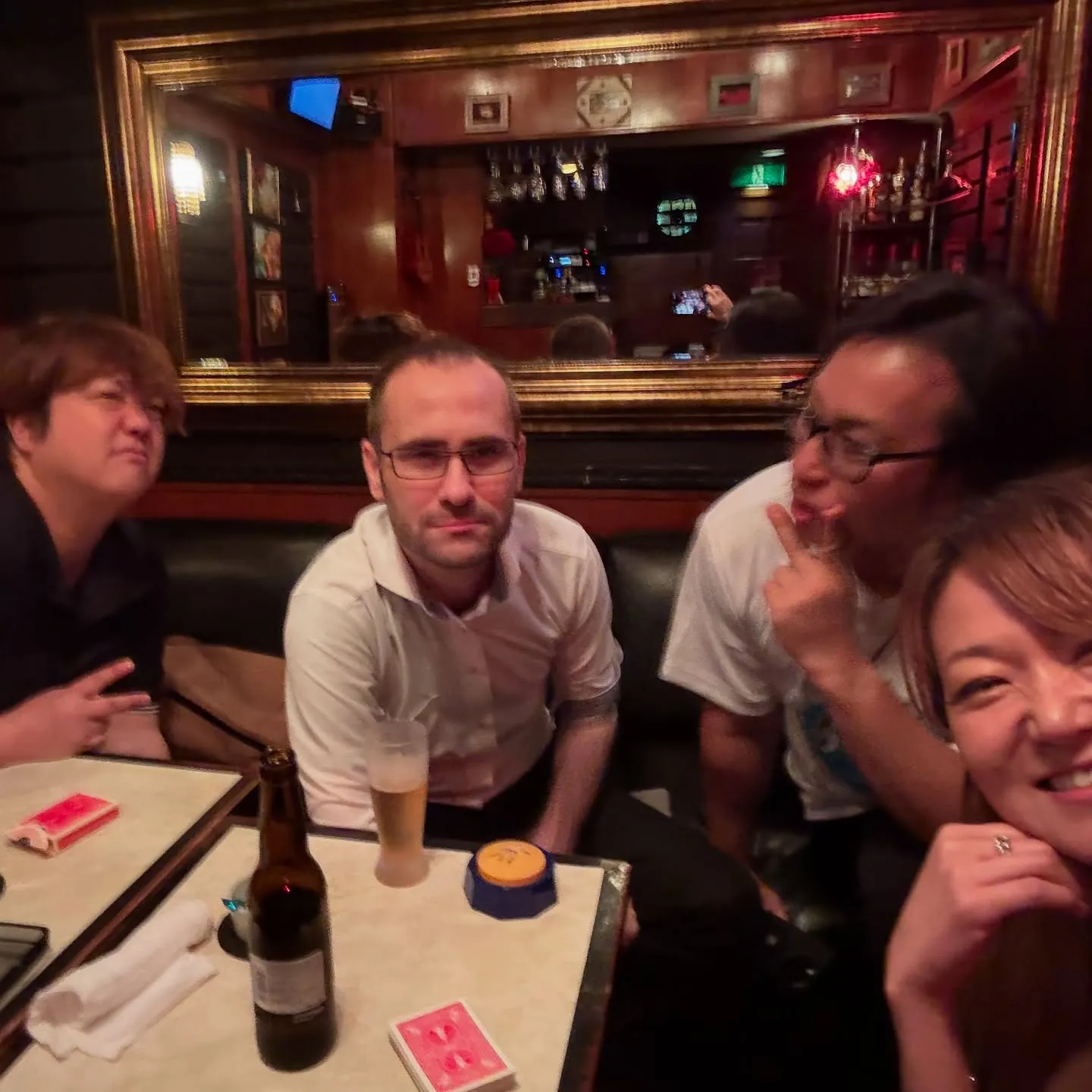 この前の金曜日は30年振りの再会のサプライズ❤️ この前の金曜日は30年振りの再会のサプライズ❤️高校同級生青山くん登場✨けんすけくんは1年振り✨画像Thx!!wジェームスは半年振り✨みんなでギャルピースしたけど私が1番下手✌️悔しいwそして、皆さんもう少…